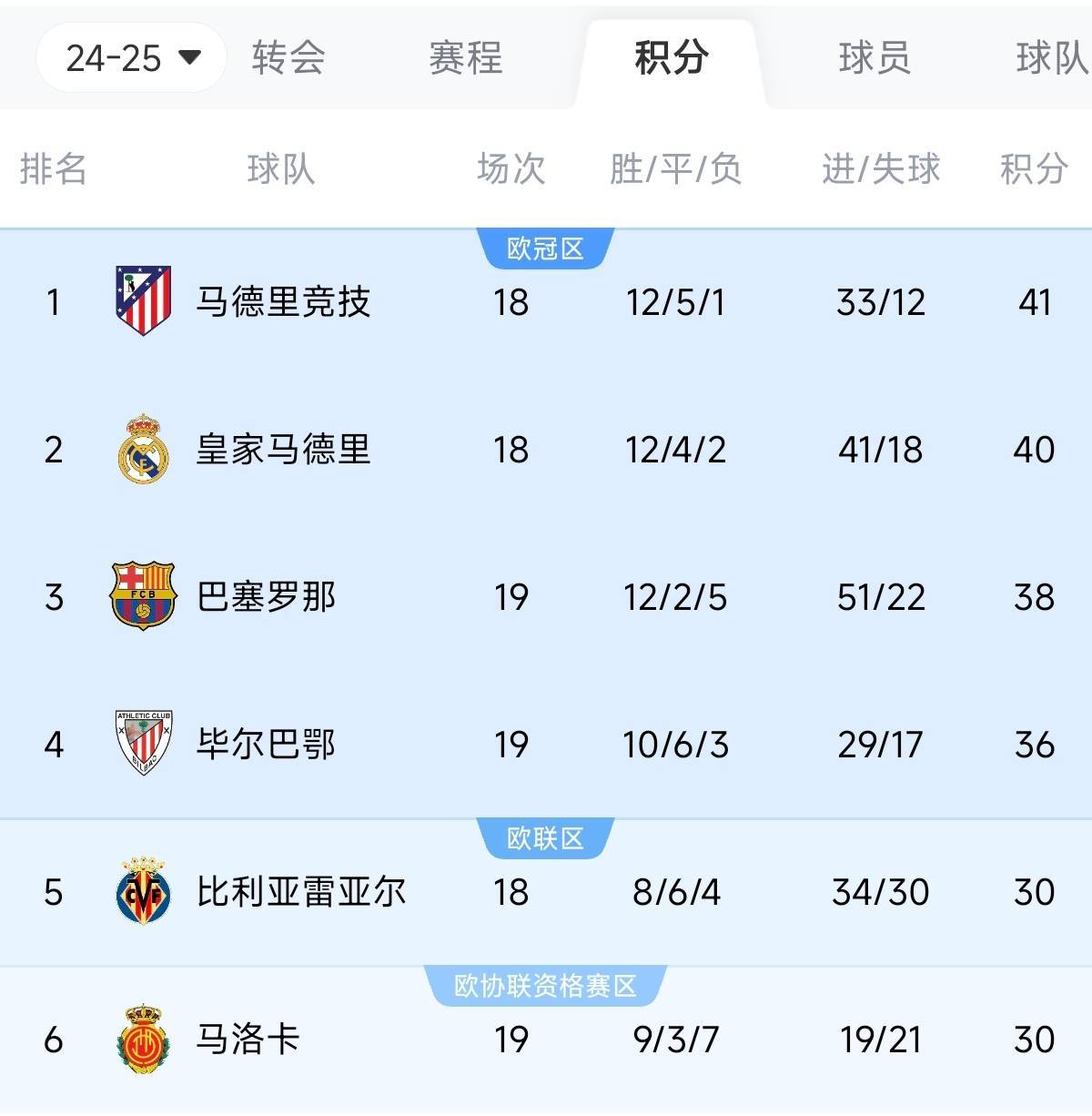 谁最意外?五大联赛圣诞冠军优势:马竞1分亚特兰大2分红军4分
