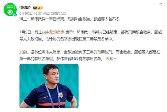 最后是刚刚被判刑的教练郝伟。郝伟的教练简历其实很辉煌,包括中超最年轻的主教练、中国女足主教练、广州恒大中国教练、中国奥运队执行教练、山东泰山主教练。郝伟连续两年入选中国金帅奖候选人名单!郝伟虽然是山东泰山俱乐部的功勋教练,但因涉嫌操纵比赛、与经纪人勾结谋取私利、涉嫌受贿等三项犯罪被逮捕。比如,据知情人透露,郝伟在担任山东泰山主教练期间,曾向江苏球员顾超支付约200万元的“优惠费”,以换取山东泰山能够在足总杯上顺利晋级下一轮。除了透露郝伟被判处有期徒刑三年外,他的名字应该出现在即将公布的第二批禁足名单中