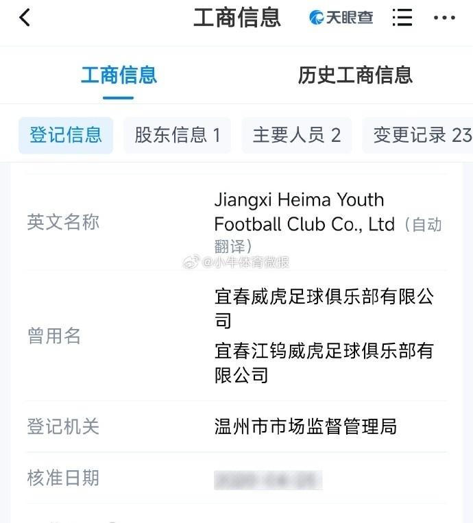 根据天眼查,江西黑马青年已于2024年最后一天完成工商登记机关变更,从江西定南县变更为浙江温州市。