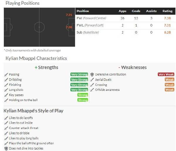 姆巴佩要做的就是冲上去,直接进入腹地。姆巴佩这么多年来一直坚持这种打法。也许这种攻击模式对他来说太容易了,所以姆巴佩在过去的几年里并没有尝试学习更多其他的攻击方法。