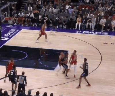 在1分钟内,西蒙斯连续两次传球给鲍威尔,随后又传球给巴图姆,球队频繁追分。