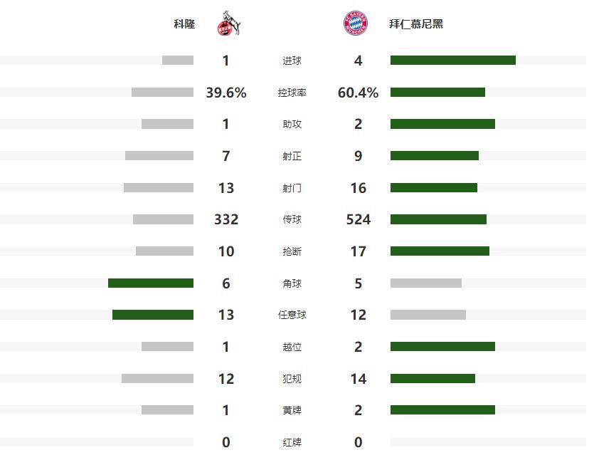 拜仁左角球在第64分钟开始,凯恩点头球再次突破科隆的球门,帮助拜仁将领先优势扩大到3-1,彻底结束了输赢的悬念。新赛季,凯恩在14场比赛中为南大王创造了25个球(22个进球和3个助攻),奥利塞在第72分钟锦上添花,将比分定格为4-1。