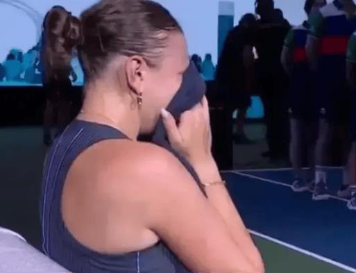虽然这次的表现比温布尔登决赛好,但阿尼西莫娃自然不愿意回到座位上,用毛巾捂住脸,伤心地哭了。获得冠军的萨巴伦卡非常高兴,也是泪水,那是幸福的泪水。当他跑到包厢区时,萨巴伦卡和他最有钱的男朋友紧紧地拥抱在一起,忍不住亲吻了他。