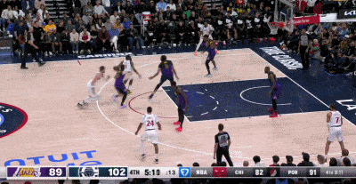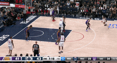 2、有攻有防!祖巴茨大帽八村垒之后,鲍威尔一条龙上篮命中。