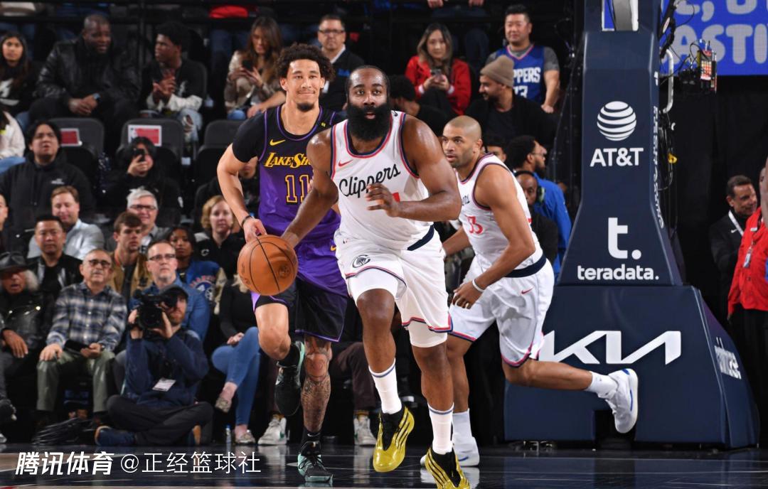 北京时间1月20日,NBA常规赛继续进行。在今天的西部焦点战中,快船主场迎战湖人,这是本赛季第一次洛杉矶德比,也是快船新主场第一次洛杉矶德比。快船第一节以6分领先,第二节以12-1领先上半场15分。第三节,快船最多领先26分,湖人11-0缩小差距,但最终没有迎头赶上。快船主场以116-102击败湖人。快船取得了4连胜,战绩变成了24胜17负;湖人以24胜2负;